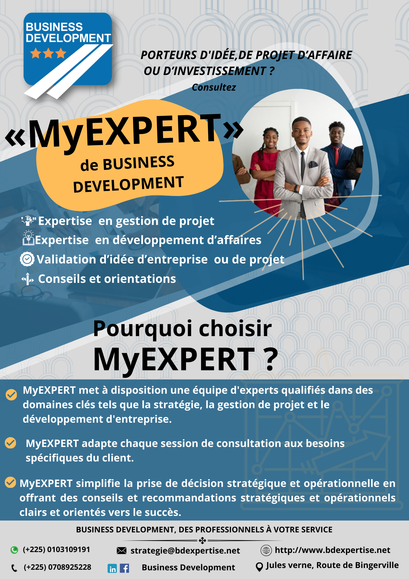MyEXPERT, est un service de BUSINESS DEVELOPMENT qui vous offre la possibilité de consulter des experts chevronnés dans les domaines clés de la stratégie d'entreprise.