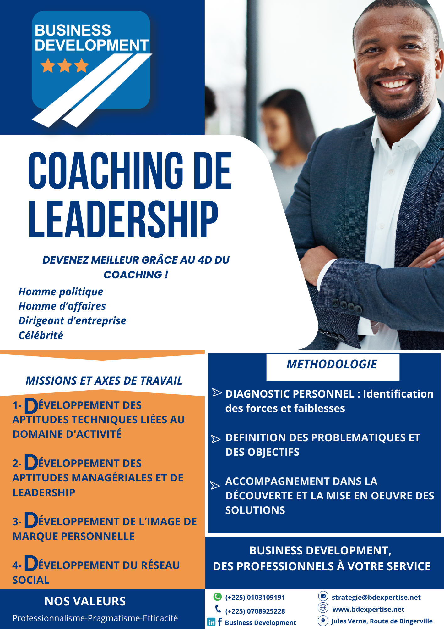 Le Coaching de Leadership offert par BUSINESS DEVELOPMENT est conçu pour accompagner les dirigeants dans leur développement professionnel et personnel.